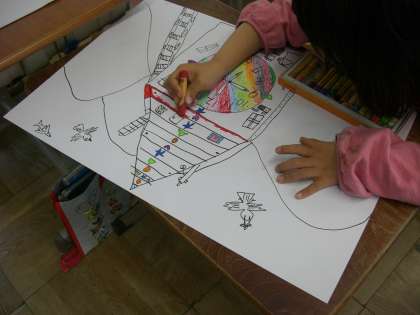 イメージを膨らませて,楽しい絵の世界で表現活動をしています。