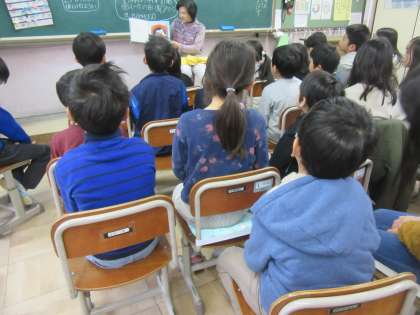今日の朝読書の時間で,ボランティアの方に,絵本の読み聞かせをしていただきました。子どもたちはとても集中してお話を聴いていました。ボランティアの方は登場人物に合わせて声のトーンを変えておられました。子どもたちはそのことにとても感心していました。音読練習で自分も読み方をまねしたいと話す子もいました。