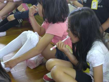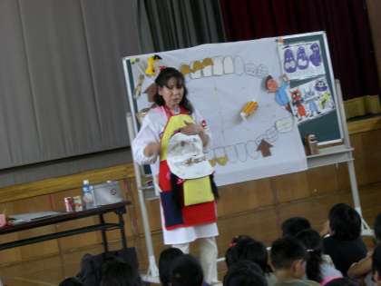 正しい歯ブラシの持ち方や歯のみがき方,むし歯の原因など詳しく,そして楽しくわかりやすく教えていただきました。