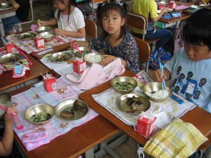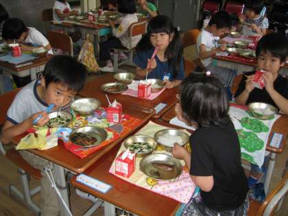 6月8日の給食の献立は,「にしんなす」でした。家庭であまり食卓にでてこないらしく,魚好きの子ども達が,珍しく四苦八苦しながら食べていました。