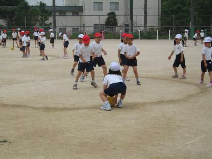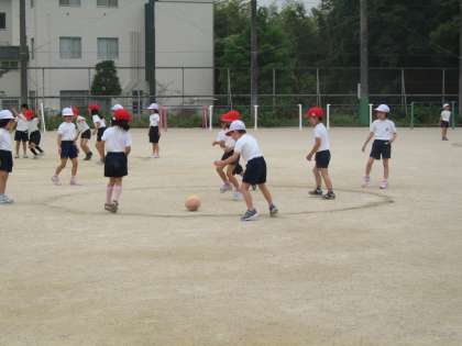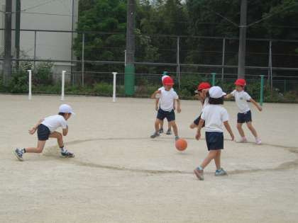 もう3回目になります。さすが3回目となると,攻めるチームも逃げるチームも上手のなります。逃げるのがすばしこく動いているので,なかなか当てられません。また,攻める方は,相手をよく見てすばやく投げられるようになりました。以前は,同じチームの人がうまく受け止められなくて,ボールを追いかける場面をよくみかけましたが,速いボールも上手に受け止められるようになりました。
