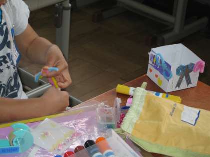 日曜参観の図工で作った「にょきにょきとびだせ」の作品の続きを仕上げました。ふたをつけて,最後の仕上げをすると,さっそく遊びだしました。お互い見せ合いながら,「おもしろいね。」「上手に作ったね。」などと言いながら,楽しんでいました。