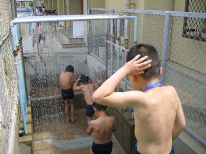 授業終了後のシャワーも目を洗うのも,とても上手になりました。次回の水遊びが楽しみです。