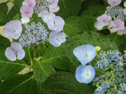 校内でも 紫や青のアジサイがみられます。