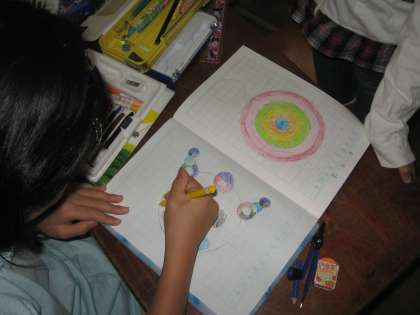 今日は、円を使ってもようづくりをしました。