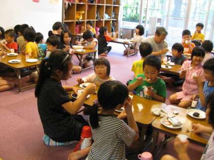 子どもたちと一緒に食べるおやつは,ことのほか美味しかったです。