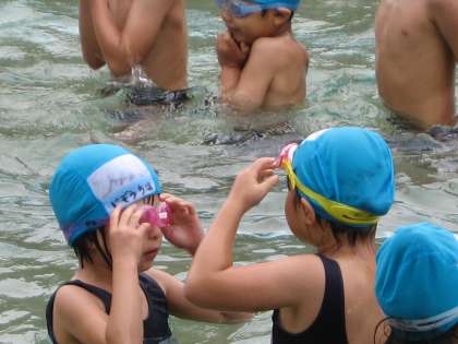 今日もプールに入りました。だんだん子ども達も慣れてきて,どんどんもぐりだします。