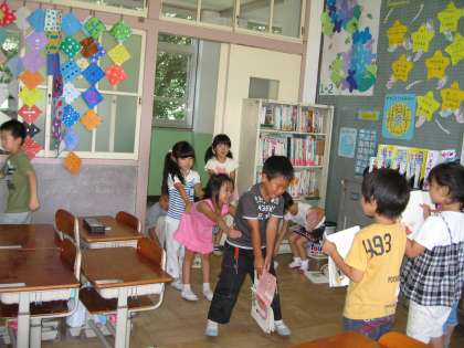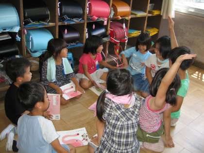 これから,大きなかぶの劇を各グループで練習をして発表しようと思います。役決めをしているところです。仲良く話し合っているところです。明日から練習開始です。どんな発表になるでしょう?