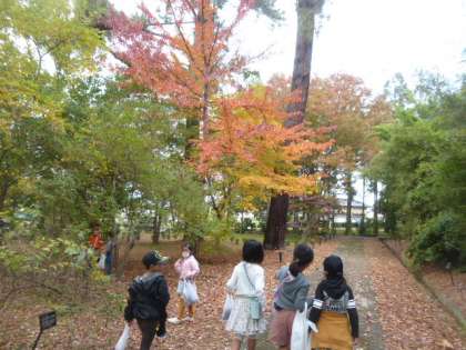 13日(金),1年生は2回目の秋見つけに行ってきました。行先は,森林総合研究所です。森林総合研究所では,職員の方に案内していただき,シラカシのドングリと,とても大きな松ぼっくりを拾うことができました。メタセコイアの並木やモミジも黄色や赤色に紅葉し,色々な秋を見つけて帰ってくることができました。