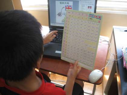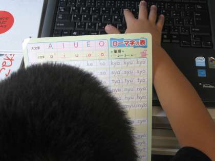 まだローマ字の学習は終わっていないので、ローマ字表の書いた下じきを見ながら、一文字ずつ打っていきました。