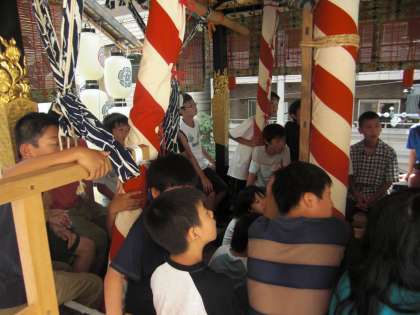 今日は,祇園祭の山鉾見学に行きました。菊水鉾と岩戸山を見学しました。