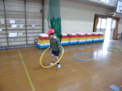 体育でサーキット運動2の学習をしています。今回は,新しく「フラフープくぐり」「ハードルゴールめがけてシュート」「マットの上で馬歩き」が加わりました。特に馬歩きでは,肘と膝を伸ばして前に進むことに気を付けて運動をします。難しい動きにも挑戦して頑張っています。