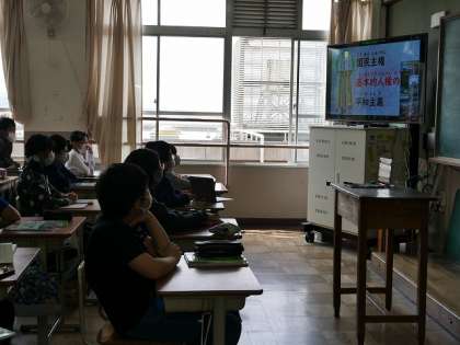 5月は憲法月間ということで,校長先生から日本国憲法についてのお話がありました。