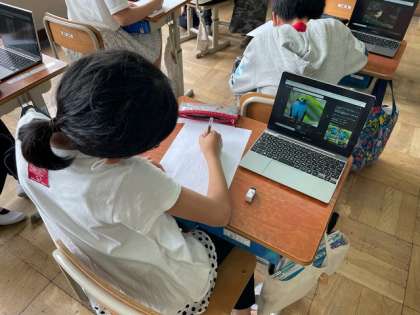 今日はタブレット端末を使用して,自分がポスターに描く野鳥を決め,下書きをしました。