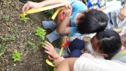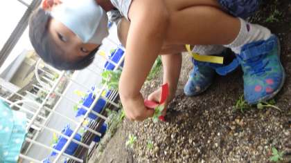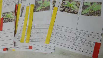 雨がよく降る中,少しの晴れ間でヒマワリとホウセンカを観察しています。