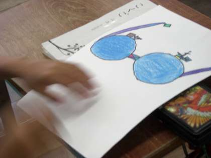 もしもこんなものがあったら・・・と考えるだけでワクワクしていた子どもたち。いろんな道具を考え出していました。その中から1つ選んで,みんなの前で説明する練習をしています。