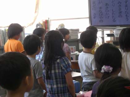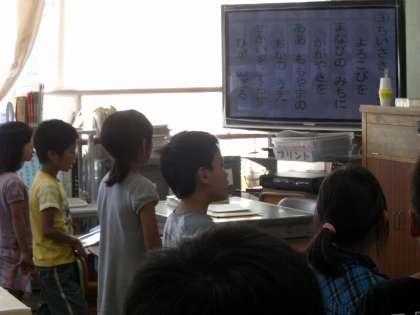 今日は音楽の時間,運動会の開会式でも歌う校歌を練習しました。入学式・始業式のときに歌ってしばらく間があいていたので,歌詞を忘れている人もいましたが,少し歌うと思いだしてきたようです。