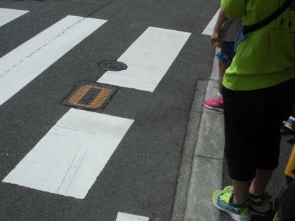 学校を出発して細い道や急な下り坂を進んでいくと,