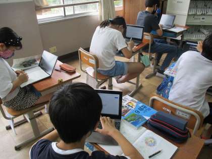 縄文時代や弥生時代についてタブレット端末を使って調べました。