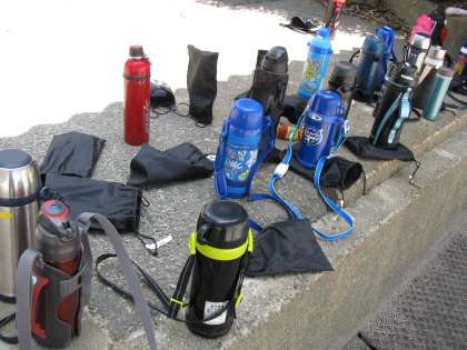 写真は,練習を見守っている水筒たちと,休憩時に水分補給をしている様子です。