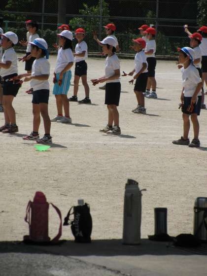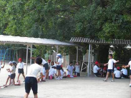 子どもたちは強い日差しの中,運動会の練習に励んでいます。