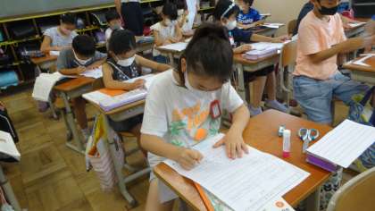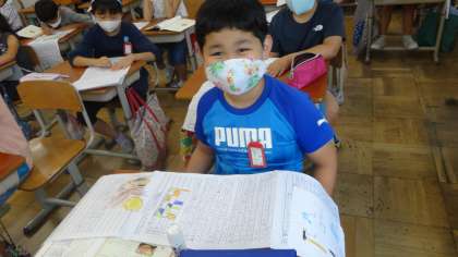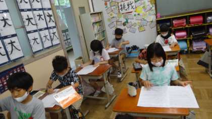 国語では,文章の組み立てを考えながら,仕事の工夫について調べたことを報告書に書きまとめていました。