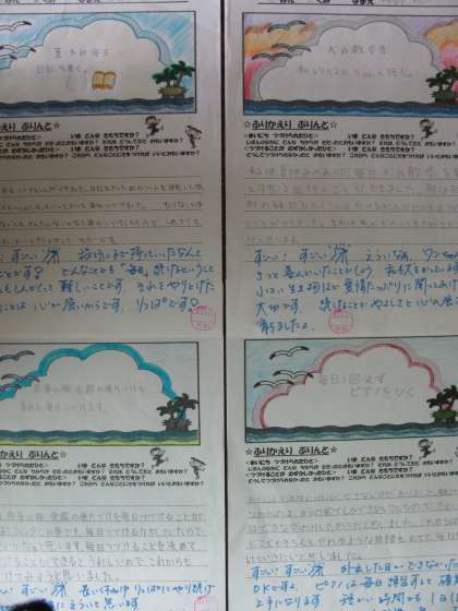 また,残念ながら,続けることが難しかった人も,「かなしい」「くやしい」と,自らの思いを記しつつ,「次こそ!」と決意を新たにしています。また,次はこうすれば続けられるというように,成功への自分なりの方策を考えている人が多かったのも嬉しい振り返りです。