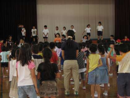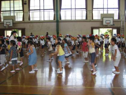 今日は,低学年の「全校ダンス」の練習がありました。嵐の「ラブ レインボー」というリズミカルな曲です。テンポが速く第1日目の今日は,ついていくのに,精一杯でした。でも,踊るのが大好きな1年生なので,嬉しそうに踊っています。次の練習日が楽しみです。