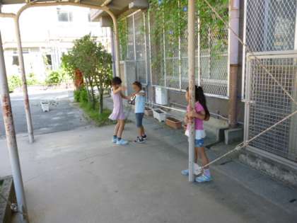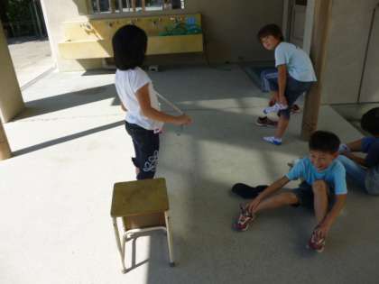 算数の授業でまきじゃくを使い,校庭の色々なものの長さをはかりました。ジャングルジムや柱の高さやすべりだいの長さを測ったりしていました。予想していた長さとは違ったため,驚きがあったようです。