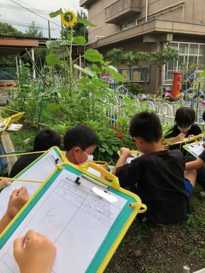 ヒマワリとホウセンカの観察をしました。
