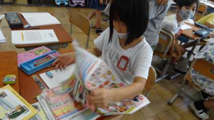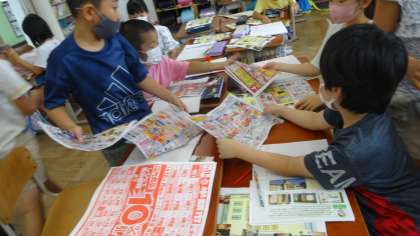 学習問題から,お家の人にインタビューしたり,チラシを見たりと,ひみつを探っているところです。