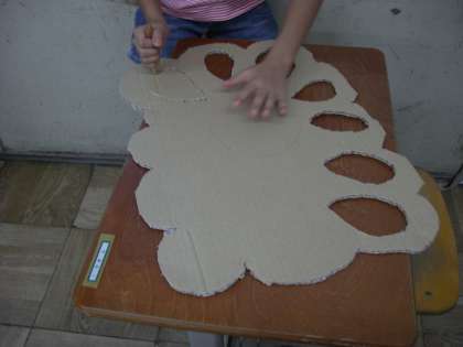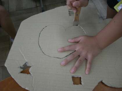 段ボールに下絵を描いて,段ボールカッターで切りぬきます。