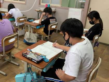 子どもたちは緊張感をもってテストに取り組んでいました。夏休み中に復習に取り組み,テスト開始直前まで熱心に復習を続ける子どもたちもいました。