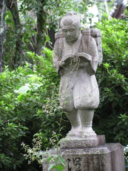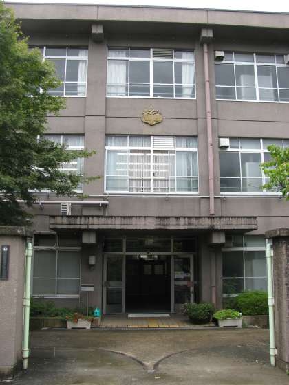写真は,みんなの登校を待っている,校舎と二宮金次郎像です。