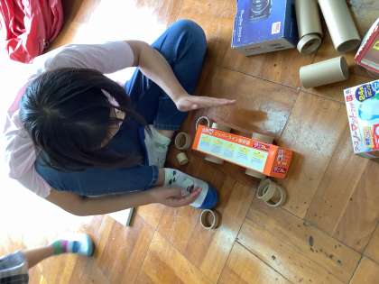 筒の形が何やら車のタイヤにつかえそうだと閃いた人もいました。