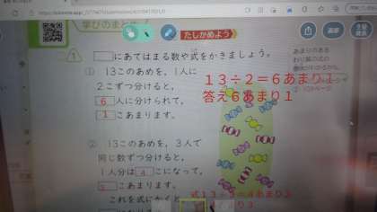 わりきれないわり算ってなに?!と,はじめは驚いていた3年生ですが,あっという間に計算の仕方や文章題の意味を理解し,まとめの学習に入っています。