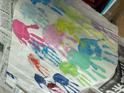 こちらの学級では手形を押しています。