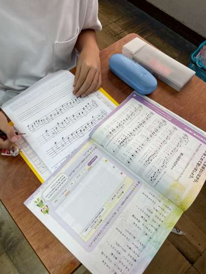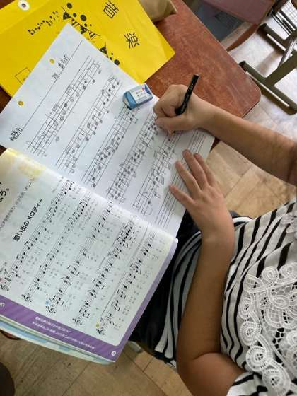 「思い出のメロディー」という楽曲の学習,今回は楽譜を写していく学習です。