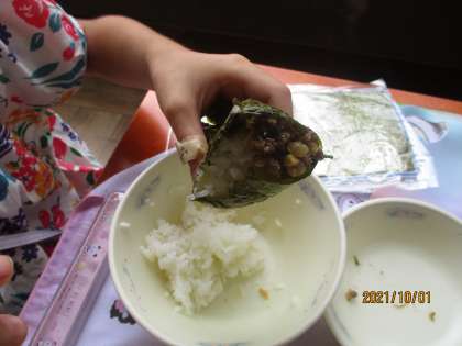 はじめて,のりで巻く給食でしたが,