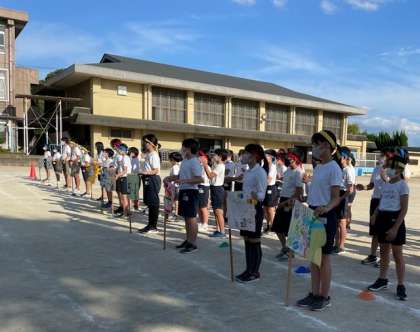 各クラスの旗がしっかり映えるように気を付けて持ち,入場しました。