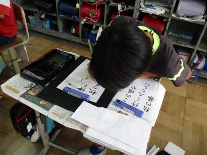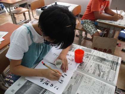 小筆の毛先だけを使っていつもより小さな字を書きます。