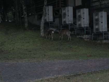 早朝,カーテンを開けるとロッジ4の前に鹿発見!