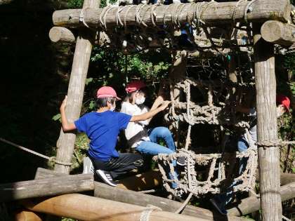 登るタワーや,野猿といった様々なアスレチックに