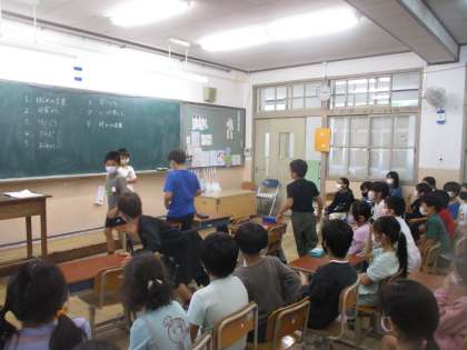 クイズでは,今までにない頭をとっても使うクイズを考え,みんなが「わからない!」「なるほど〜」と和気あいあいとした雰囲気で楽しんでいました。