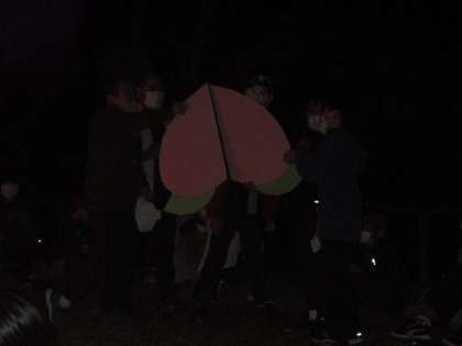 一日目の夜にはキャンプファイヤーを楽しみました。はじめに火の神や火の精が登場したり,ルパンの登場人物がやってきたりしました。桃山にちなんだ桃太郎のネタでは,桃から桃太郎以外の人が生まれてきたり・・・キャンプファイヤー係を中心にどの出し物も大盛り上がりであっという間に時間が過ぎてしまいました。五年生みんなで大きな火を囲んで笑いあった思い出をいつまでも忘れないでいてほしいなと思います。