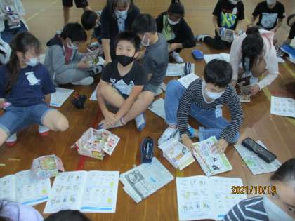 また,身の回りの新聞紙を使ってスリッパを作ったり,チラシが食器の変わりになることを学んだりして,これからの生活に活かしていきたいという思いを高めていました。