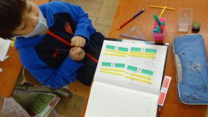 数え棒で,計算の仕方や意味を考えながら,学習しています。