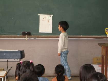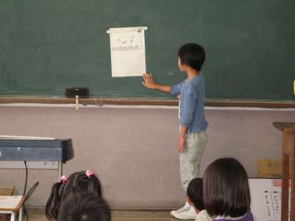 国語の学習の「みいつけた」のまとめとして,生き物カードを作りました。教科書の本文同様に、「どこにいるのか」「どんな生き物か」「どうすれば,みつけられるのか」を作文にまとめました。がんばって書き上げたカードなので,,発表は堂々とできました。