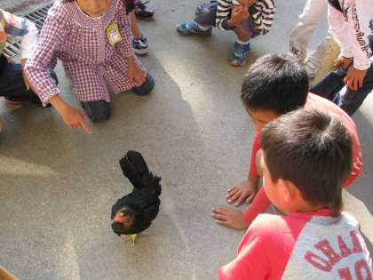 朝,外で日光浴をさせていると,子どもたちが集まってきました。