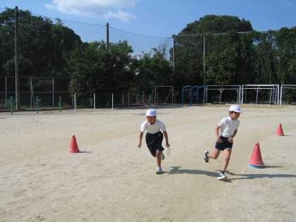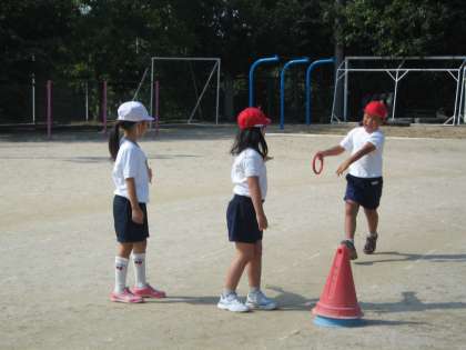 青空の下,体育でリレーをしました。運動会で高学年の熱戦をみていたので,子ども達ははりきって走りました。応援にも力が入り,「フレーフレー赤組!」なんて声があがりました。また来週したいと思います。